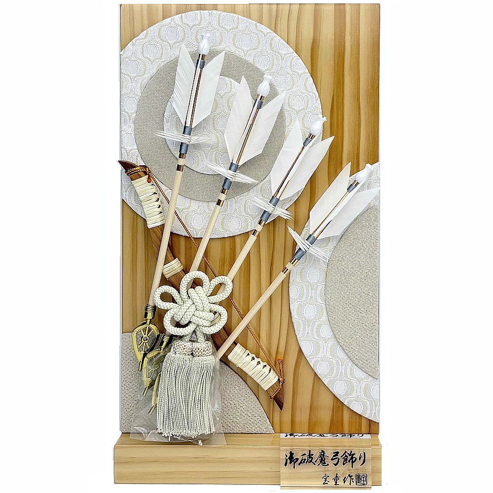 ナチュラルカラーで仕上げたおしゃれなデザインで一生の魔を破る魔除けの意味を持つコンパクトサイズの破魔弓飾りです
