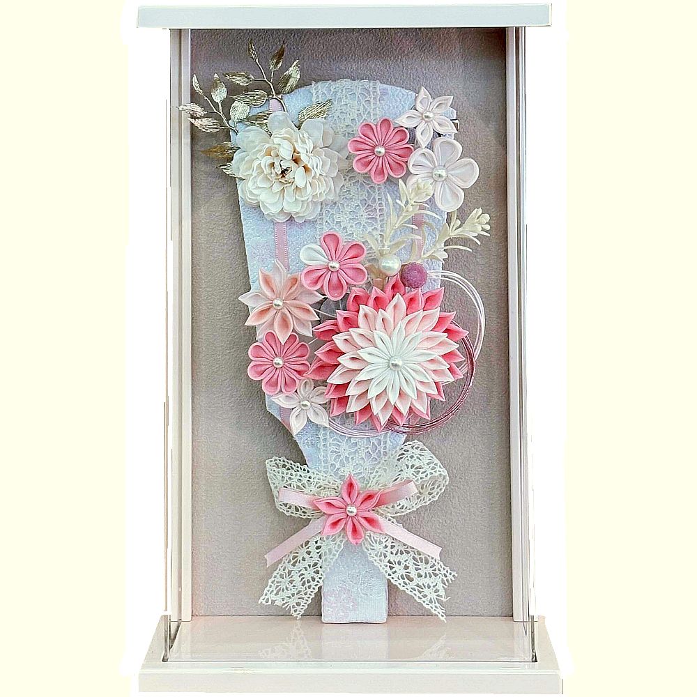 9号 アクリルアイボリー額入り つまみ羽子板 ピンク
