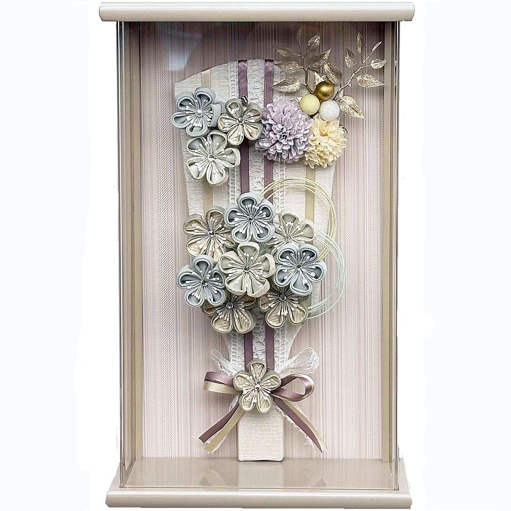 奥行薄型でコンパクトにお飾りいただける可愛らしく華やかな彩のアクリル額入り羽子板飾りです