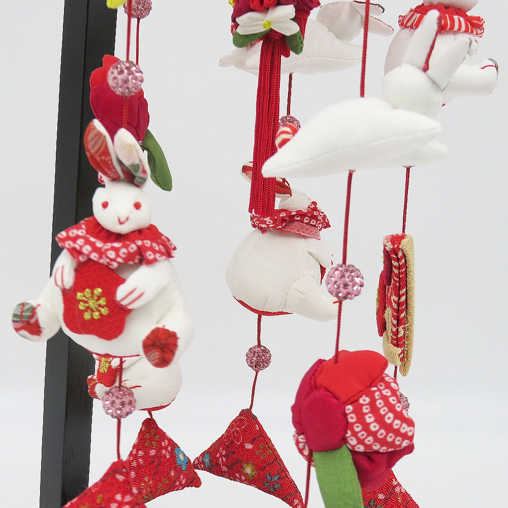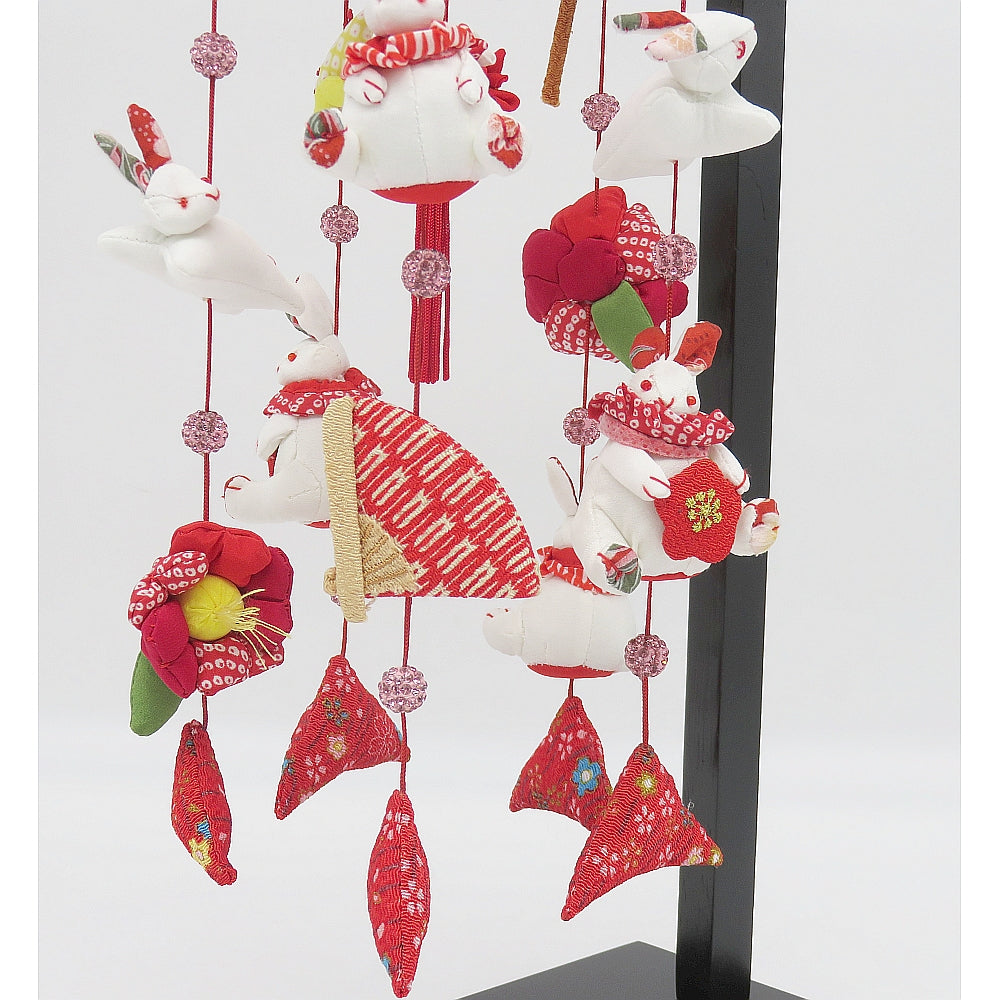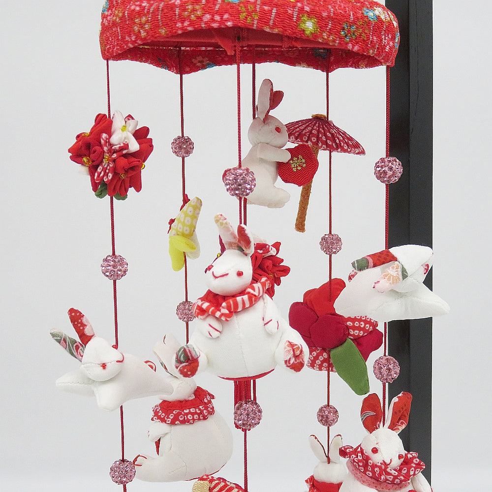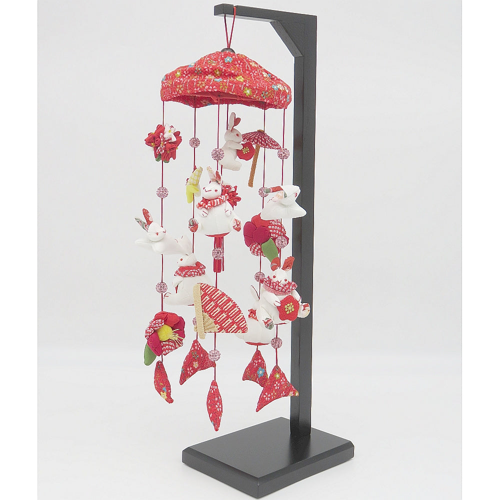 つるし雛 うさぎスワロ玉赤 飾台付 つり飾り