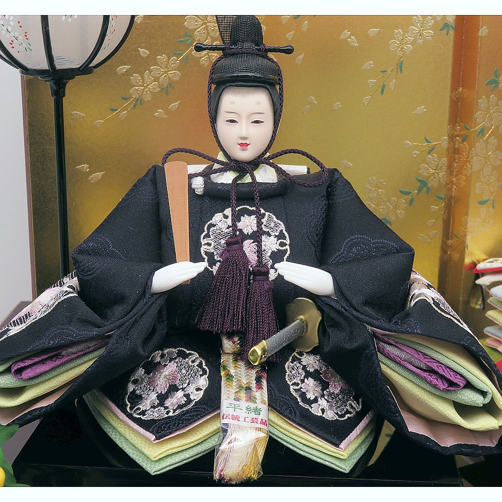 繊細で見応えある刺繍の衣装が華やかな存在感あるお雛様です