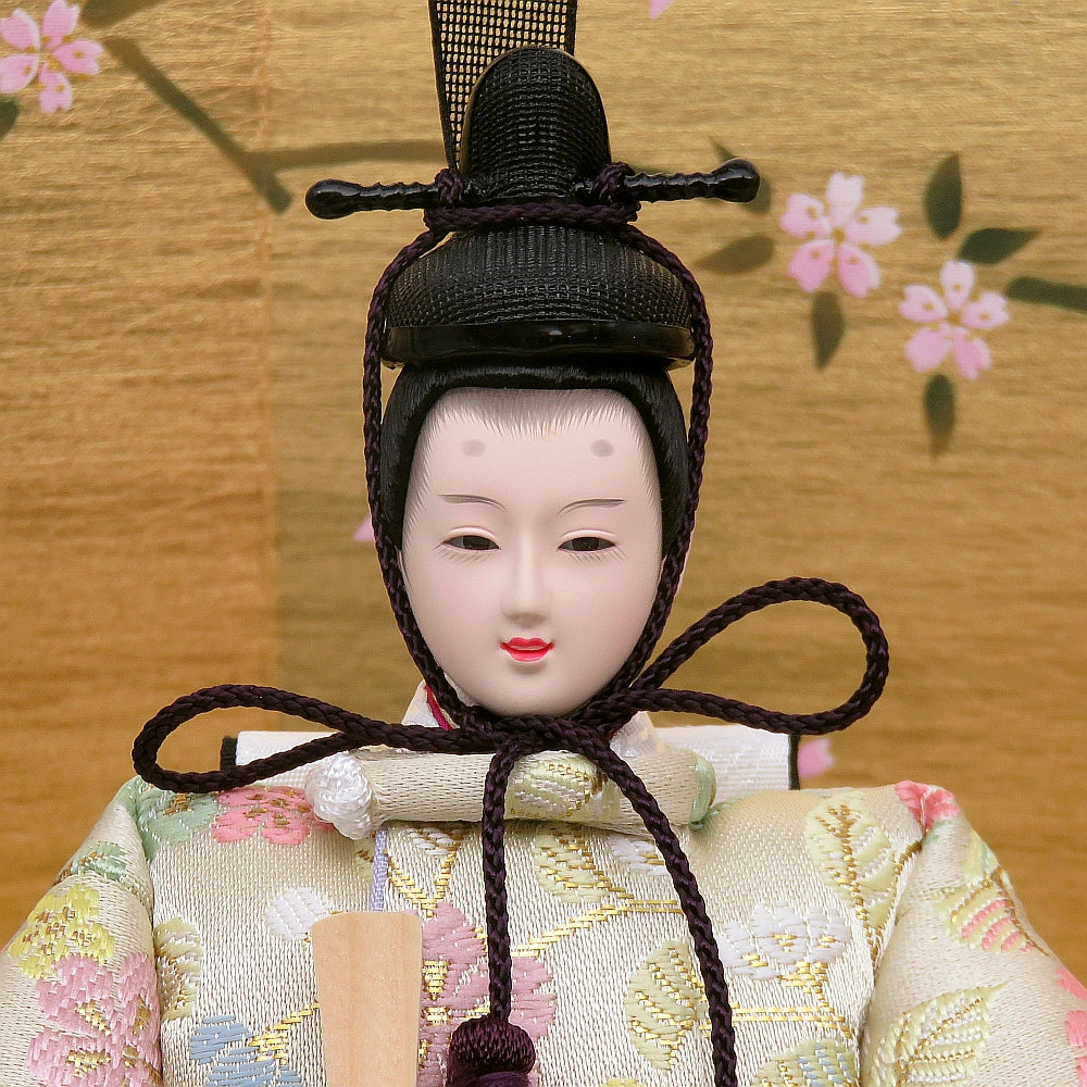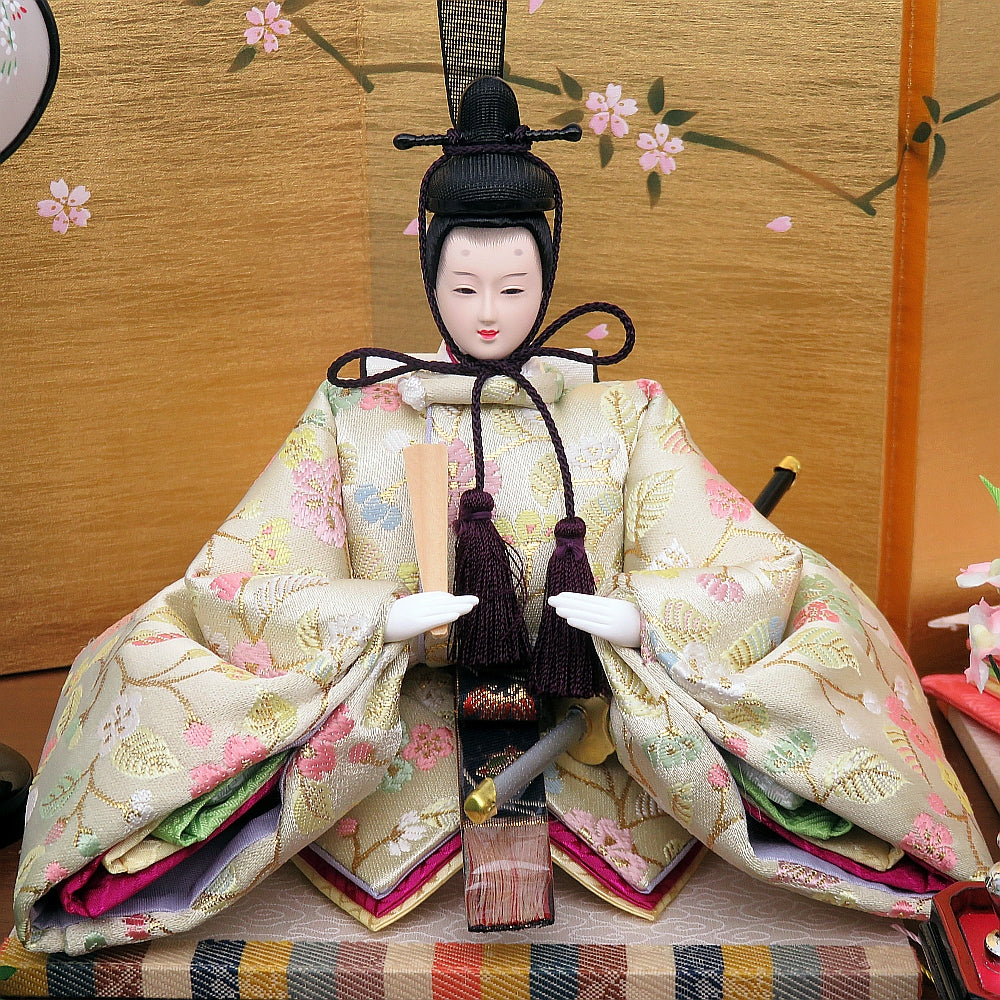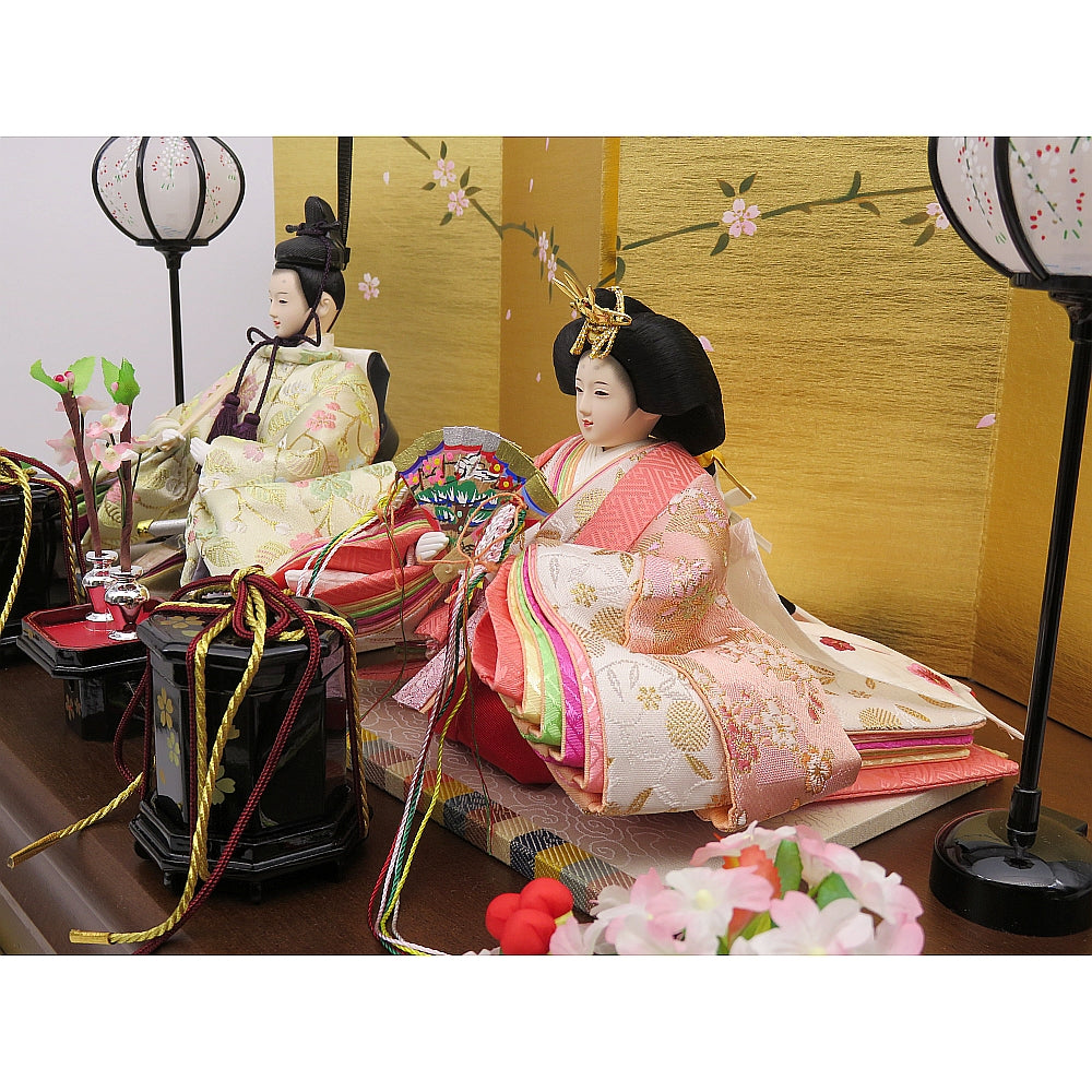 枝小桜がポイントの美しい金屏風がお雛様をより一層引き立てます