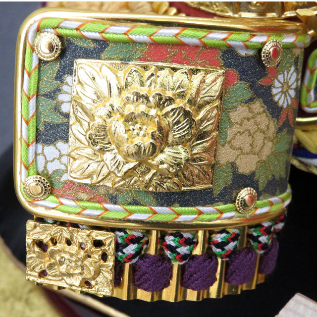 上品な作風の兜飾りです。兜の縅(おどし)や吹き返し、金具の使い方が大変美しく映えます。