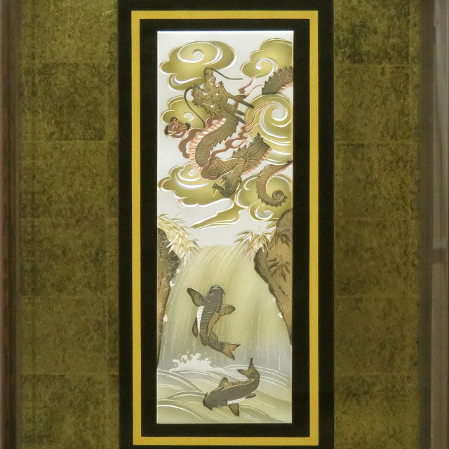 ケースは鯉が滝を登って龍になる図を彫金で表しています。