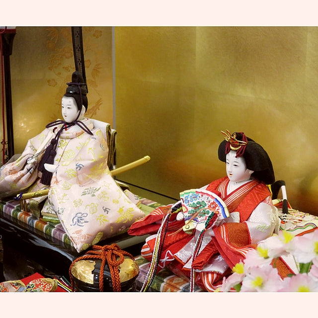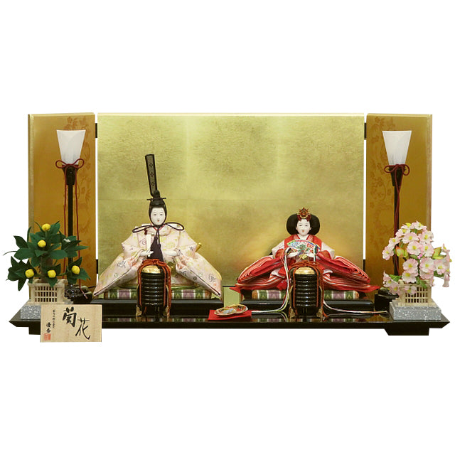 加賀塗屏風が上品な親王をいっそうひきたてます