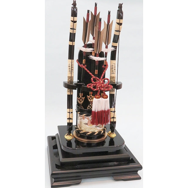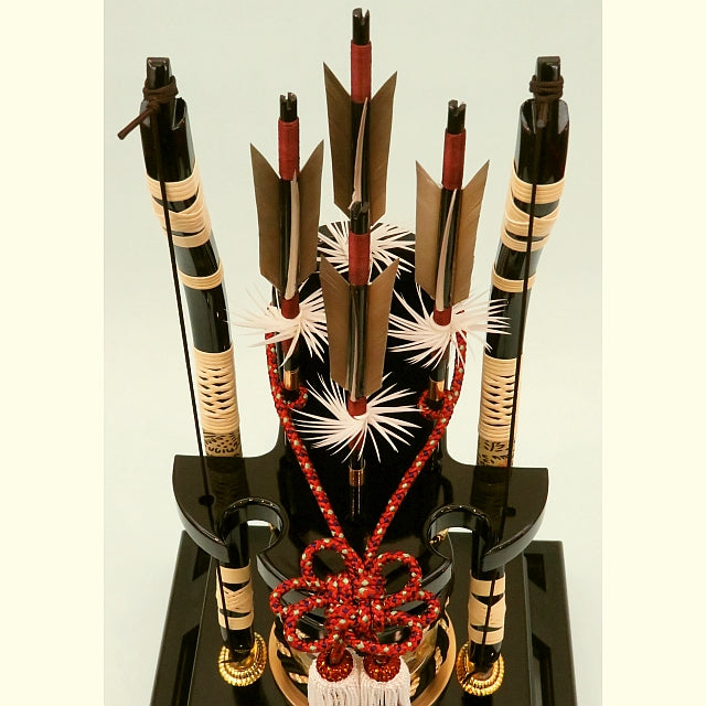 繊細な矢羽根を中心にシンプルでコンパクトに仕上げた破魔弓飾りです。